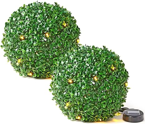 Solalite 2 X 28cm Green Topiary Balls With 20 Solar Led Lights Hanging Topiary Ball Lights Sphere Decorative For Wedding Artificial Plant Backyard Balcony Garden Decor Amazon Co Uk Garden Outdoors